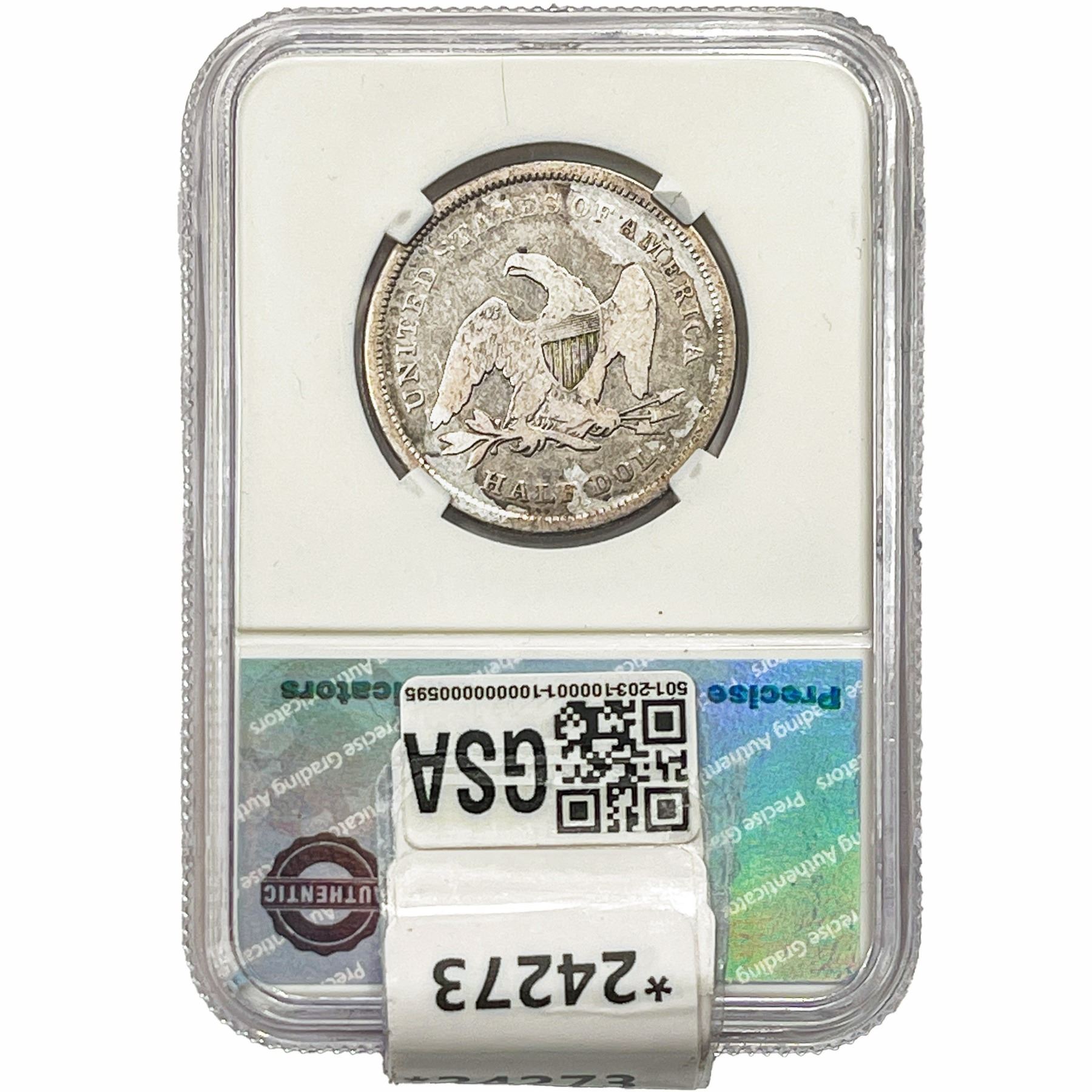 COINS AND CURRENCY LISTED IN GSA’S CATALOG AS GRADED AND ENCAPSULATED BY PCGS, NGC, ANACS, ICG, PCGS CURRENCY, PMG, PCGS BANKNOTE GRADING, CMC OR ANY OTHER THIRD-PARTY GRADING SERVICE ARE LIKEWISE SOLD “AS-IS” EXCEPT AS EXPRESSLY SET FORTH HEREIN. ALL THIRD-PARTY GRADING SERVICE GUARANTEES, INCLUDING AUTHENTICITY, ARE THE SOLE RESPONSIBILITY OF THE THIRD-PARTY GRADING SERVICE AND NOT WARRANTIES OR GUARANTEES OF GSA. BIDDERS SHOULD CONTACT THESE THIRD-PARTY GRADING SERVICES DIRECTLY WITH RESPECT TO ANY CLAIMS OR QUESTIONS THEY MAY HAVE CONCERNING THEIR GUARANTEES AND WARRANTIES. BIDDERS ACKNOWLEDGE AND AGREE THAT AUCTIONEER IS NOT BOUND BY OR LIABLE FOR ANY OPINION OR CERTIFICATION BY ANY THIRD-PARTY GRADING SERVICE. REMOVAL OF A PRODUCT FROM ITS PROTECTIVE CASING OR HOLDER OR ALTERATION OF ANY COIN HOLDER WAIVES ALL RIGHTS CONCERNING THE PRODUCT CONTAINED THEREIN.