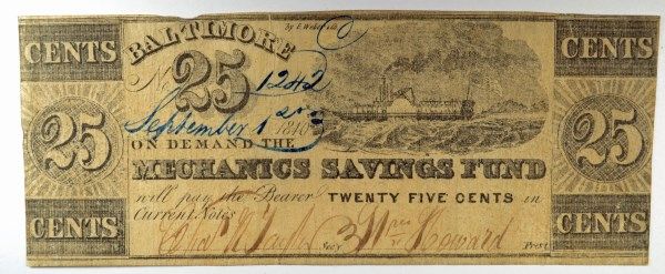 1840 TWENTY-FIVE CENT BALTIMORE, MD (MECHANICS SAVINGS FUND) NOTE