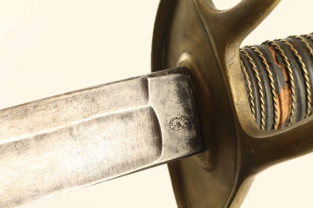 first pattern with knights head, Solingen import marking, no scabbard, small losses from leather in grip, in very good condition. Several swords of which are imported and used by both sides in the civil war.