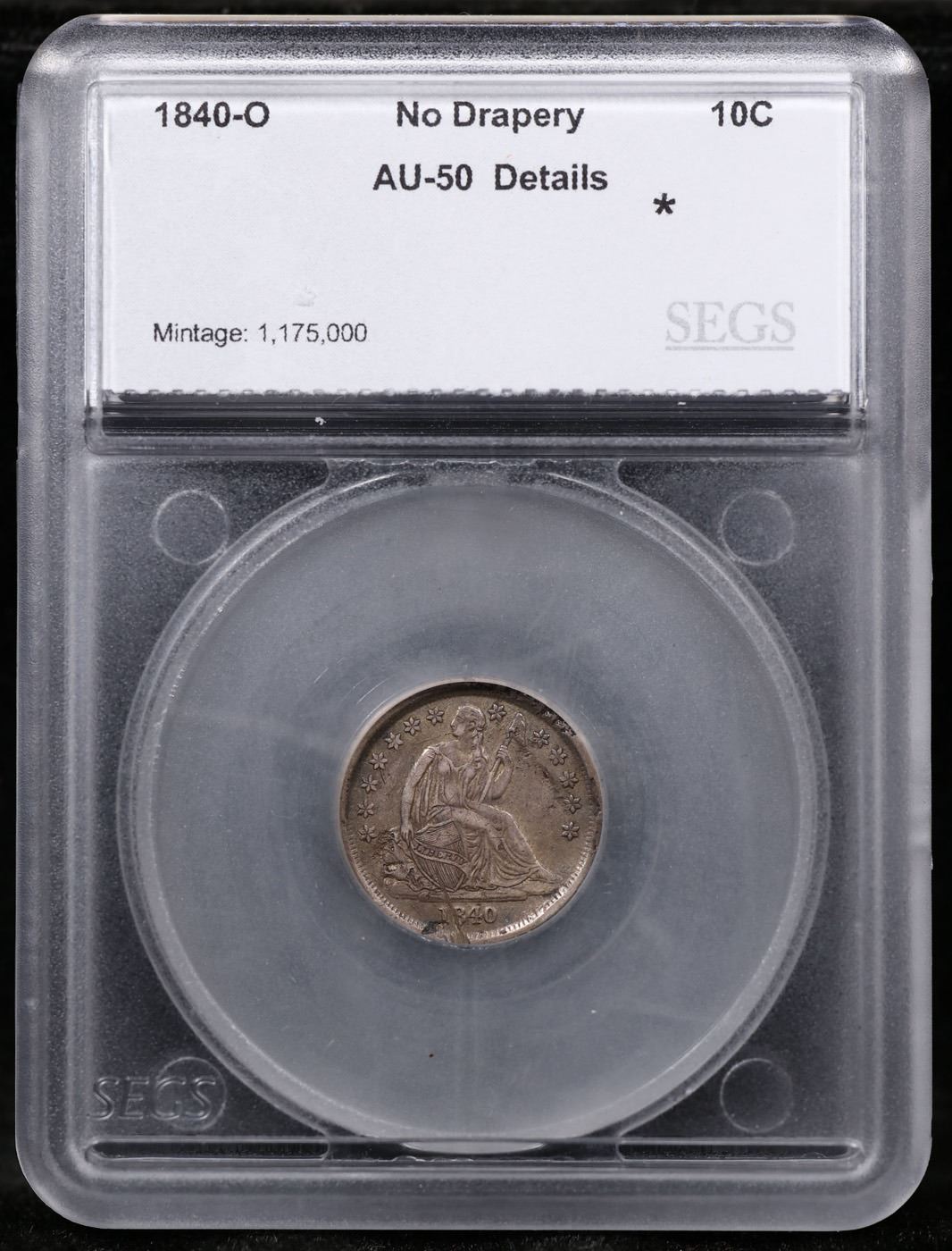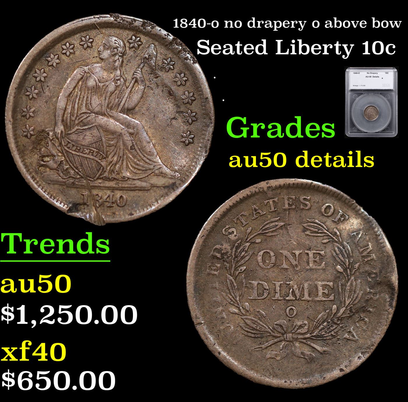 1840-o no drapery o above bow Seated Liberty Dime 10c Graded au50 details By SEGS.