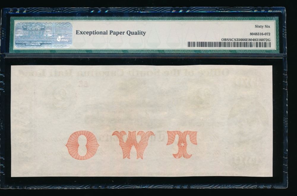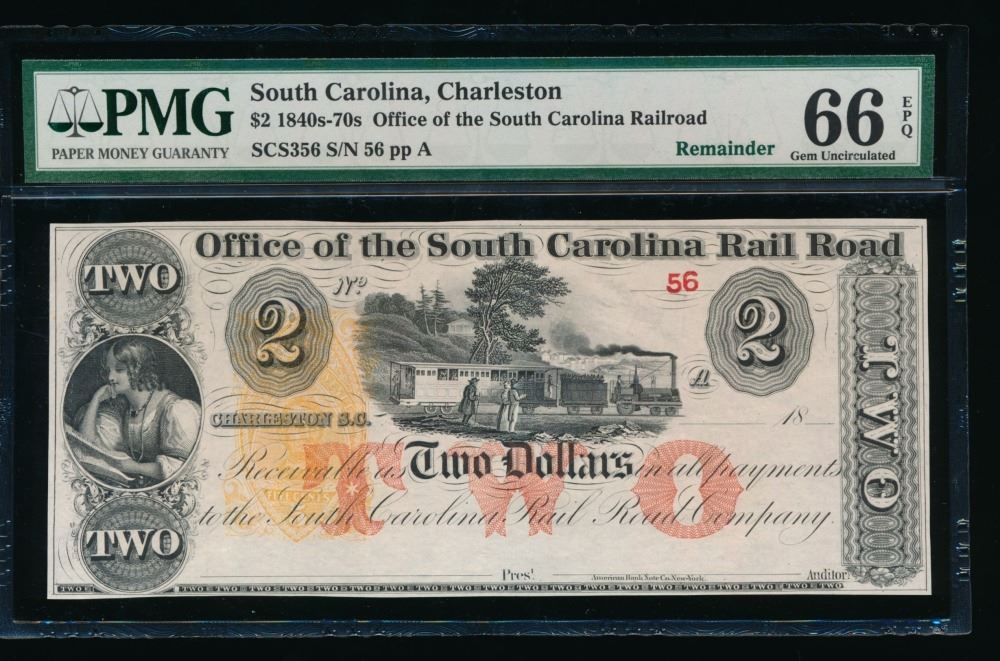 One 1840's-70's $2 Charleston SC Obsolete PMG 66EPQ.