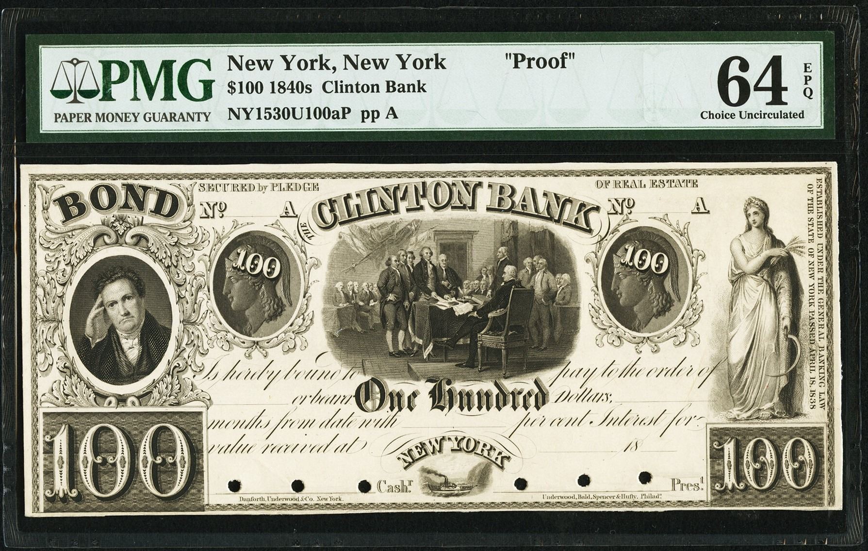 One 1840's New York Clinton Bank Note PMG 64EPQ.