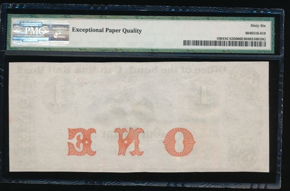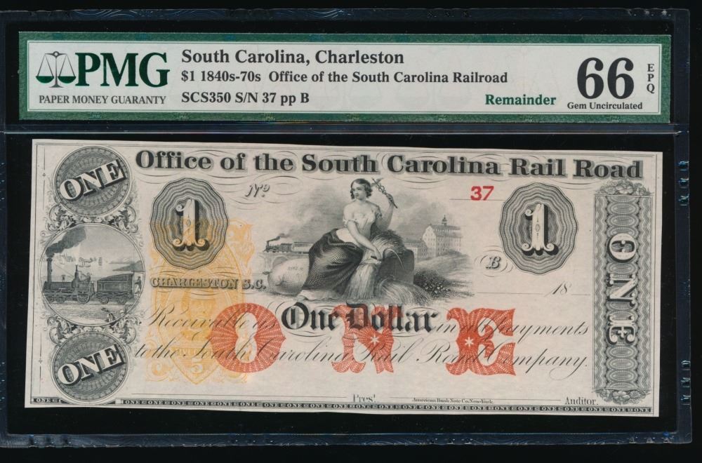 One 1840s-70s $1 Charleston SC Obsolete Note PMG 66EPQ.