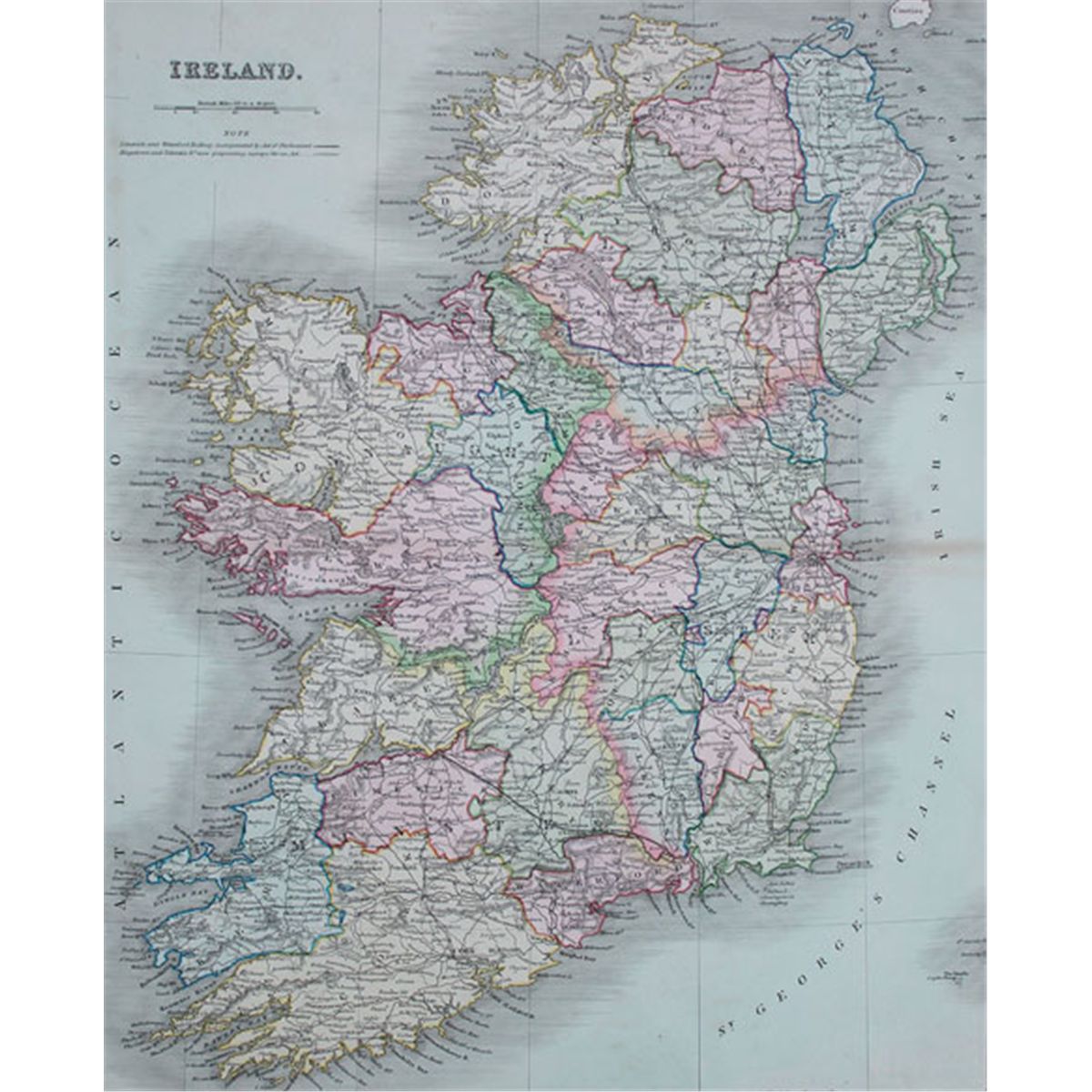 Map of Ireland drawn and engraved by J. Dower, London and published by Henry Teesdale, London. With coloured county borders and railway routes.