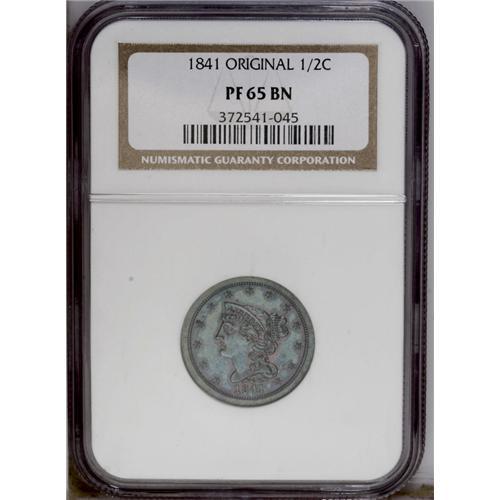 1841 1/2 C Original PR65 Brown NGC. B-1, R.6. Die Stat