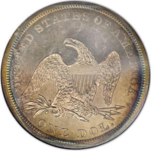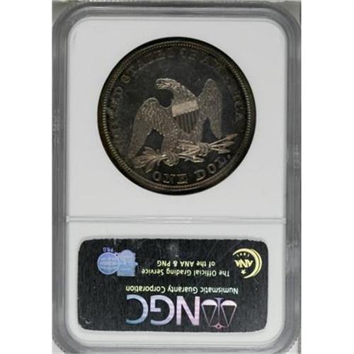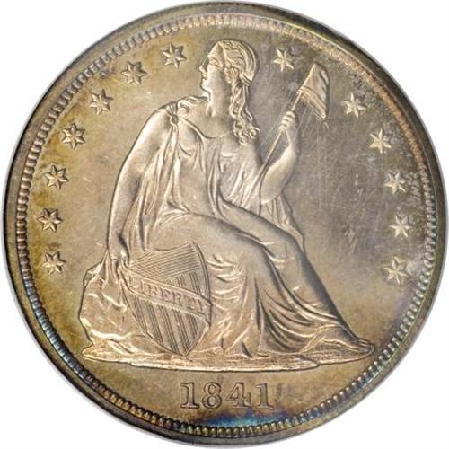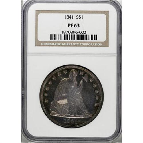 <B>1841 $1 PR63 NGC.</B></I> The 1841 is widely regarded as the rarest proof date in the Seated dollar series. In 2006, Duncan Lee wrote, "in the past twenty years, only three separate specimens [Eliasberg, Pittman, Starr] have been observed plus the specimen in the Smithsonian Institution. All known proofs are restrikes and have the same common reverse." However, see our comments at 1840 regarding "restrikes."<BR> The present example, pedigreed to the famous Amon Carter, Jr. Collection, is also struck from the shared reverse die, identified by die lumps on the final A in AMERICA. A brief study of business strike 1841 dollars located two different obverse dies (Heritage lots 388-2208 and 414-3724), but neither matches the logotype placement of the 1841 proofs.<BR> Like many pieces from the Carter collection, this example has attractive peripheral aqua-blue toning. The fields are light to medium golden-brown. The strike is penetrating. A loupe reveals a few unimportant field marks.<BR> As of February 2008, NGC and PCGS combined have certified five proof 1841 Seated dollars. We have researched the pedigrees of four of those five pieces, and present them below. One of the four NGC pieces has either been submitted twice, or has never appeared at auction.<BR><BR>1. <B>PR64 PCGS</B></I>. Hollinbeck Coin Co. (2/1953), lot 29; John J. Pittman (David Akers, 5/1998), lot 1672; Richmond Collection (David Lawrence, 11/2004), lot 1506; Rod Sweet Collection (Bowers and Merena, 7/2005), lot 1002, which realized $166,750.<BR><BR>2. <B>PR63 NGC</B></I>. The present coin.<I> </B></I>Col. E.H.R. Green; Jack Roe (B. Max Mehl, 6/1945), lot 435; Jerome Kern; Golden Jubilee Sale (B. Max Mehl, 5/1950), lot 811; Amon G. Carter, Jr. Collection (Stack's, 1/1984), lot 247.<BR><BR>3. <B>PR63 NGC</B></I>. George B. Hussey (J.C. Morgenthau, 3/1940), lot 123; Floyd T. Starr (Stack's, 10/1992), lot 581; Superior (7/1993), lot 553; Kenneth C. Long (Bowers and Merena, 5/1995), lot 1211; Phil Kaufman Collection of Early Seated Proof Sets, Part Two (Heritage, 1/08), lot 3022, which realized $74,750.<BR><BR>4. <B>PR63 NGC</B></I>. Louis E. Eliasberg, Sr. (Bowers and Merena, 4/1997), lot 2205; Dr. John L. Pellegrini (Heritage, 7/2005), lot 10257, which realized $74,750.<BR><I>From The Queller Family Collection of Silver Dollars.</B></I><BR><BR><B>Coin Engraver:</B> Christian Gobrecht<BR><BR><b>Shipping:</b> Coins & Currency (<a target="_blank" href="http://www.heritageauctions.com/common/shipping.php">view shipping information</a>)