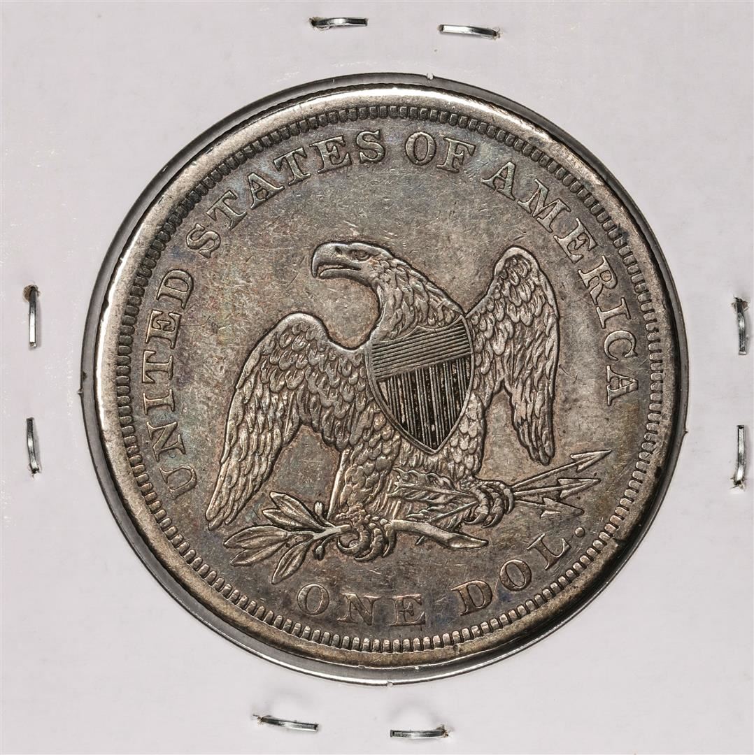 One 1841 $1 Seated Liberty Silver Dollar Coin.