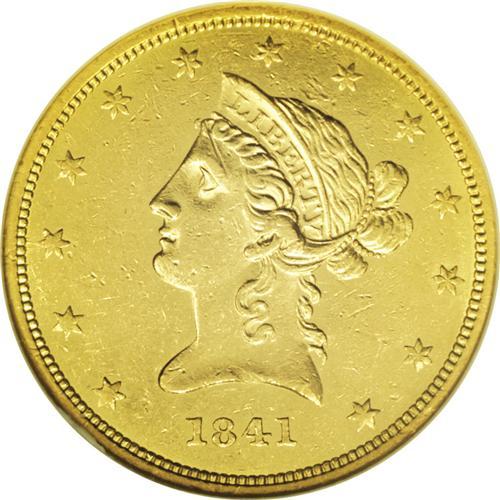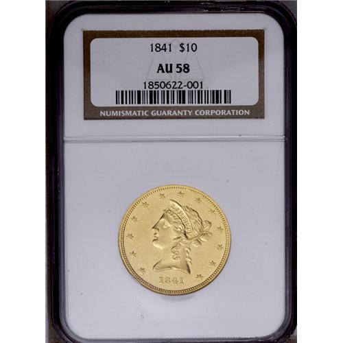 1841 $10 AU58 NGC. This issue, like some of the 1842 c