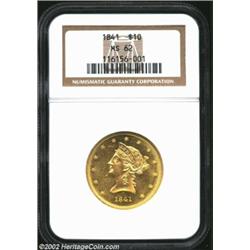 1841 $10 MS62 NGC. The 1841 is a significant condition rarity above the XF level. Only 10-12 pieces.