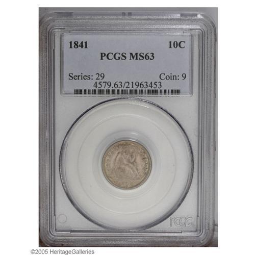 <B>1841<10C> MS63 PCGS.</B></I> Rose, gray, and olive-green colored with bold detail on the devices. A scarce coin in any Mint State grade. Population: 17 in 63, 14 finer (10/05).