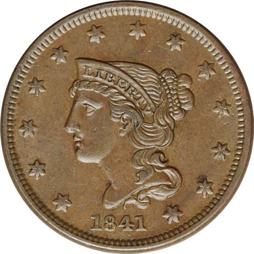 1841 1C MS63 Brown NGC. N-7, R.2. The two lumps beneat 1841[1C] N-7, R.2. MS63 Brown NGC. XF45 EAC.