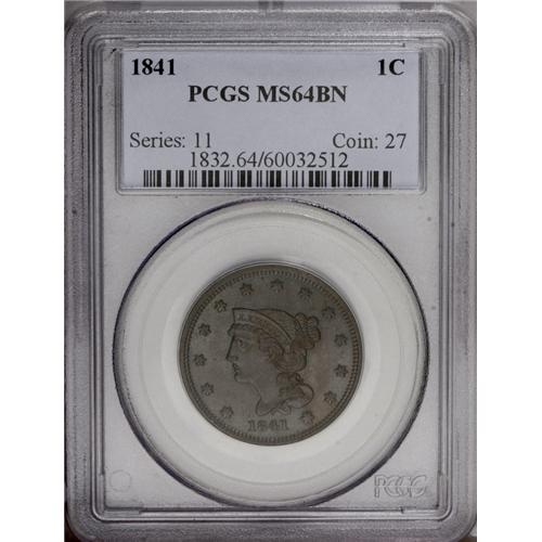 1841 1C MS64 Brown PCGS. N-7, R.2. Minute die lumps be 1841[1C] MS64 Brown PCGS.