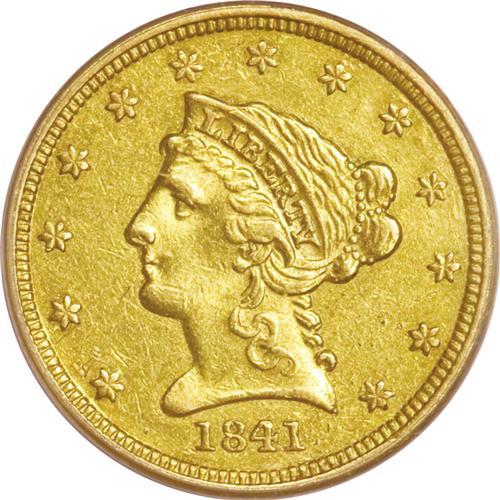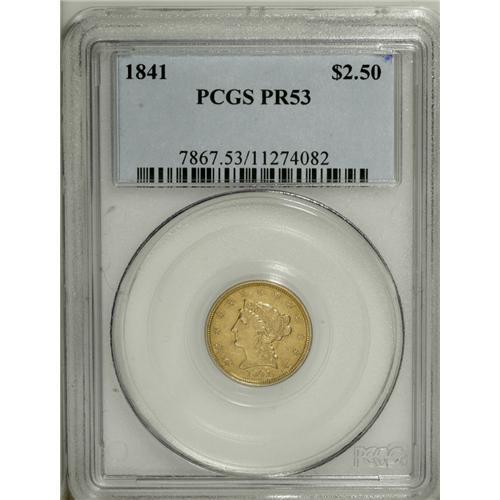 <B>1841 $2 1/2 PR53 PCGS.</B></I> The existence and rarity of the proof-only 1841 quarter eagle was known almost since the day it was made. The first illustration of such a coin appeared in <I>A Manual of Gold and Silver Coins of All Nations</B></I> by Jacob Reese Eckfeldt and William E. Dubois, published the following year. While illustrations in a numismatic reference from 1842 have a much different appearance than they do today, being created in this case by a medal-ruling machine and appearing as a line engraving, the point is that the piece was actually illustrated. The medal-ruling machine was an innovation that made a two-dimensional engraving from a three-dimensional object.<BR><BR>An existing unanswered question regarding this issue surrounds the possible existence of business strikes. There is no Mint record of any pieces struck, as proofs of the time were not including in Mint accounts. However, the number of existing pieces is substantially greater than proofs of nearby years. Perhaps as many as 20 quarter eagles of 1841 are known today, while only about 20 proof quarter eagles are known for all other years from 1840 to 1849 combined. It is possibly the case that many additional proofs were struck for the other years, but eventually found their way into circulation, with wear or attrition being the reason they are not know identified. For the proof-only 1841, every piece that exists, regardless of grade, is considered a proof.<BR><BR>While this issue maintained a regular appearance in numismatic literature and also in established collections throughout the 19th century and well into the 20th century. Most discussions surrounding this issue have taken place in the last 40 years, a time of substantial numismatic scholarship. This discussion usually surrounds the status of these coins as proofs or business strikes.<BR><BR>In his 1975 <I>Analysis of Auction Records,</B></I> David Akers wrote: "The 1841 is generally considered to be the most desirable of all Liberty Head quarter eagles. There is no official record of this date having been struck, but obviously a small number were minted. Most numismatists and cataloguers feel that this is a proof-only date and that all known specimens were originally struck in proof for inclusion in presentation sets. This seems unlikely to me and I am not convinced that the 1841 is a proof-only date. First of all, there are far too many specimens known when compared to other proof quarter eagles (or proof gold of any other denomination) of the same period. Less than five proofs are known of every other quarter eagle from 1840 to 1848, and yet I would estimate that at least 12 and possibly as many as 15 1841s are known. Only a few of them are clearly and unequivocally proofs, such as the coin in the Smithsonian Institution, the piece in Louis Eliasberg's collection, the Davis/Graves coin, and perhaps one or two others. Most of the others are well circulated and, in fact, grade from VG to EF. More importantly, the supposedly 'impaired proofs' just don't look like impaired proofs. Consider for example the Wolfson specimen, which was subsequently in the Shuford Sale and then in the 1974 NASC Sale conducted by the American Auction Association. Although barely circulated, it has almost no trace of a proof surface and few of the other characteristics of a genuine proof (such as a square edge), although it does appear to have been struck from the same dies as the proofs."<BR><BR>Researcher John Dannreuther has noted that the reverse die used to strike 1841 quarter eagles was also used to coin proofs of later dates through 1846. This fact, alone, suggests the status of these pieces as proofs. In contrast to the earlier comments of David Akers, Jeff Garrett and Ron Guth wrote in their Encyclopedia of U.S. Gold Coins: "Only proof quarter eagles were produced in 1841; circulated examples are said to exist, but these are actually mishandled proofs that entered circulation. Author Jeff Garrett has yet to see an example with any hint of circulation-strike surfaces remaining."<BR><BR>Today, it is our opinion that all 1841 quarter eagles were struck as proofs. The present example is such a coin that retains considerable reflective proof surface, especially in the fields close to the devices. It is sharply struck with nearly full design details on both sides, except where obscured by light wear. The surfaces are light greenish-gold in color with a few minor hairlines and other slight defects, clearly matching the plate of the December 1977 Bowers and Ruddy Sale entitled the Donald F. Herdman Collection. However, according to the catalog, this piece was actually a duplicate in the "Fairfield Collection" consigned earlier to Bowers and Ruddy by Arthur Lamborn. In the May 2000 sale of the Harry W. Bass, Jr. Collection, Dave Bowers gave a brief background of the Fairfield Collection: "The Fairfield Collection was an illustrious gathering primarily of rarities, by a New England collector who enjoyed quality and rarity and liked it even better if two, three, or four pieces could be had rather than a single coin."<BR><I>Ex: Fairfield Collection duplicate (Bowers and Ruddy, 12/1977), lot 6406.</B></I><BR><BR><b>Shipping:</b> Coins & Currency (<a target="_blank" href="http://www.heritageauctions.com/common/shipping.php">view shipping information</a>)