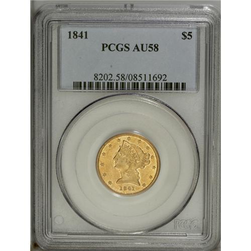 1841 $5 AU58 PCGS. Just a few more than 15,000 of thes