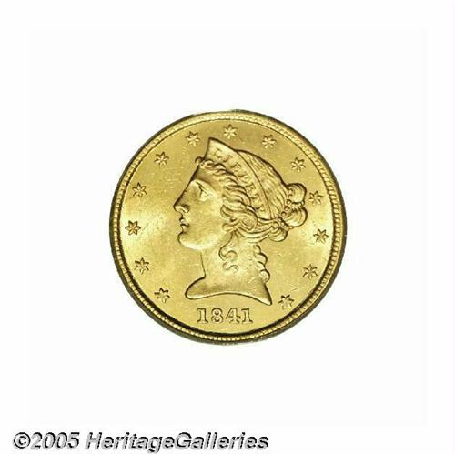 1841 $5 MS64 PCGS. This scarce, low mintage issue