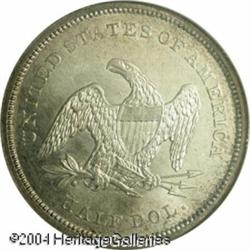 1841 50C MS64 NGC. An R.7 issue in Mint State, thi <B>1841 50C MS64 NGC.</B></I> An R.7 issue in Mint State, this piece is rare as a near-Gem, and virtually unobtainable finer. Each side has bright, semi-prooflike fields and shows the die striations that made it so. Light tan-gray patina is seen over each side and the striking details are well defined throughout. A few tiny marks are scattered about, but the only one that can be reliably used for pedigree purposes is an abrasion just above the shield on Liberty's leg. Population: 7 in 64, 2 finer (10/04). <BR><BR><B>Important notice:</B> Heritage usually auctions material at the rate of 200-250 lots per hour. On some occasions eBay Live bid software or the Internet may not be able to keep up with the pace of the auction. We recommend placing a realistic absentee bid now as insurance to avoid disappointment. Occasionally the auctioneer may eliminate or reject an eBay Live bid, and the auctioneer may also reopen a lot after the close of the eBay live bidding (usually because we missed an audience bid), and may reject your bid even if it shows you as the winning bidder. By bidding via eBay Live, you agree that Heritage may award the lot to another bidder at its sole discretion under the circumstances described above or any other reasonable circumstances. Since eBay bids are not shown to us until we open the lot on the floor, we treat those bids just like floor bids. In most cases the floor responds before the eBay bid is presented to us, due to Internet lag time, so for consistency we have made it a policy that floor bids are always considered first over tie eBay live bids. Also please note that all Heritage lots purchased through eBay Live carry a 20% Buyer's Premium. Please make sure you read the Terms and Conditions before you bid. This lot is being auctioned in conjunction with a live floor auction by Heritage Galleries & Auctioneers. All final auction and invoice information will be supplied by Heritage Galleries & Auctioneers, and all other information should be considered preliminary. Lot:6086