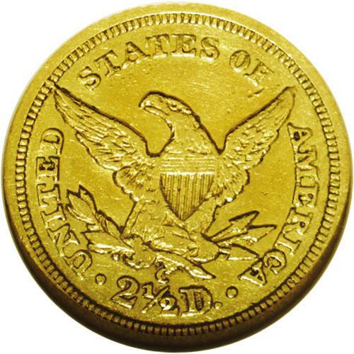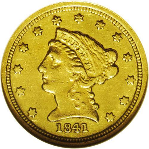<B>1841-C<$2 1/2>--Cleaned--ANACS. AU50 Details.</B></I> Variety 2-B. One of the scarcest Charlotte quarter eagles and an especially challenging issue in high grades. The surfaces are bright and lustrous with rich golden-yellow patina. Liberty's hair curls and the peripheral stars reveal only a touch of softness, while the eagle's feathers are especially sharp for an early Charlotte issue. Struck from rotated dies, and showing a bit of unnatural brightness from an old cleaning.<BR><I>From The Carolina Gold Collection, Part Two.</B></I>
