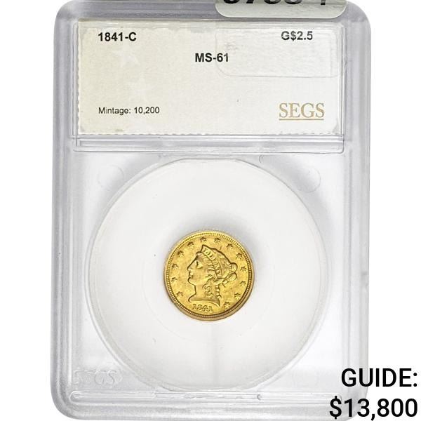 1841-C $2.50 Gold Quarter Eagle SEGS MS61
