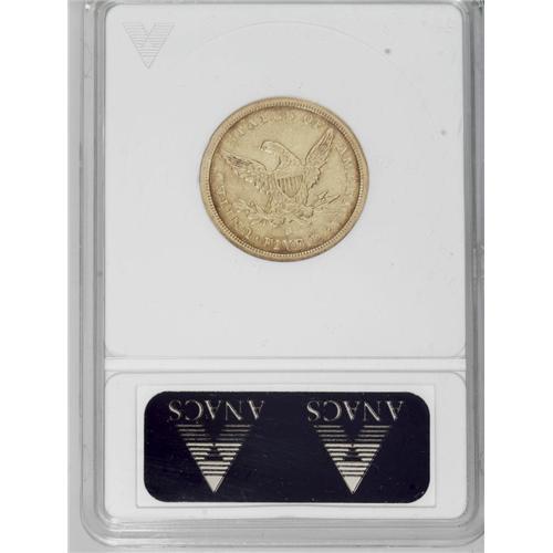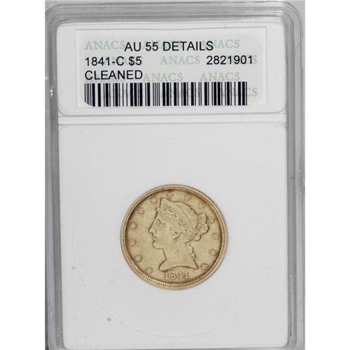 <B>1841-C<$5>--Cleaned--ANACS. AU55 Details.</B></I> Variety 3-C. A nicely detailed piece with dulled amber-gold surfaces. Lightly hairlined with assorted handling marks.