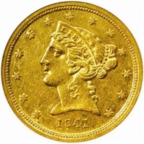 1841-C Liberty Half Eagle. Winter 3-C, the only known dies. AU-55 (NGC).