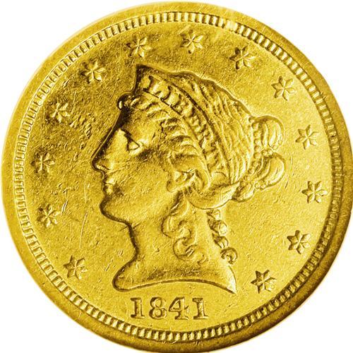 <B>1841-D<$2 1/2> AU55 NGC.</B></I> Variety 2-C. A boldly defined pale gold piece with generally clean surfaces, although a few small marks are noted on the upper left obverse field. Light die cracks nearly bisect the obverse between 3 and 9 o'clock, and the reverse between 4 and 10 o'clock. Just 4,164 pieces were struck. Census: 8 in 55, 10 finer (9/06).