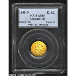 1841-D $2 1/2 AU55 PCGS. Winter 2-C. According to Winter, this is a rare variety and he only cites o