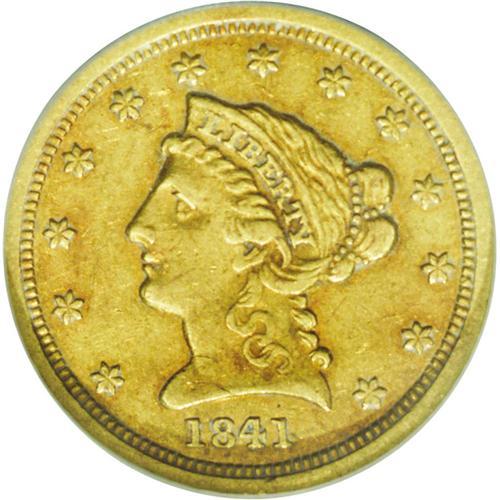 <B>1841-D<$2 1/2>--Improperly Cleaned--NCS. AU Details.</B></I> Variety 2-C. A crisply struck reddish-gold representative that retains traces of white powder residue in recessed areas. Moderate handling marks are noted on the field above the eagle and on the bust truncation. The 1841-D has a tiny mintage of 4,164 pieces, and survivors with the sharpness of the present example are desirable.