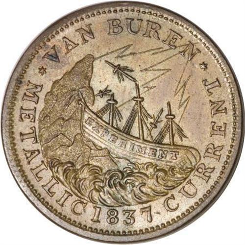 <B>1841 Daniel Webster, HT-20, Mint State.</B></I> Copper, 28.5-29 mm, R.1. This nice brown Uncirculated example <B> </B></I>would enhance anyone's Hard Times token collection. <BR> <BR><BR><b>Shipping:</b> Coins & Currency (<a target="_blank" href="http://www.heritageauctions.com/common/shipping.php">view shipping information</a>)