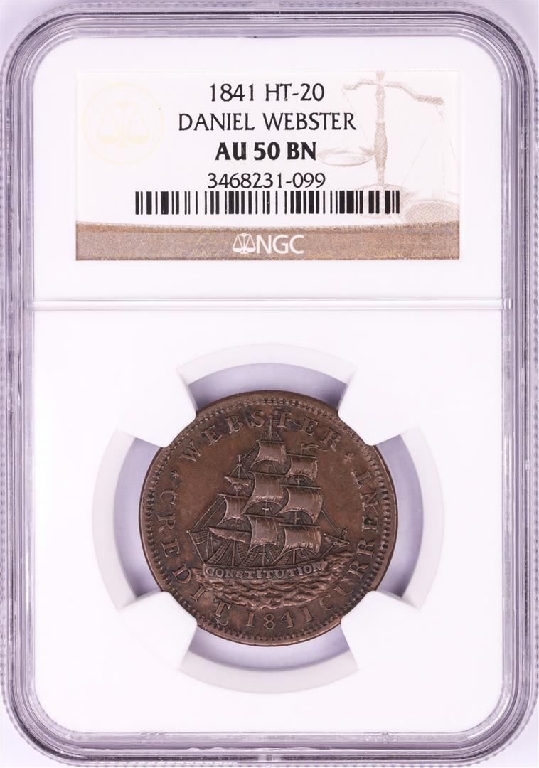 One 1841 Daniel Webster Hard Times Token NGC AU50 BN HT-20. NGC Certified.