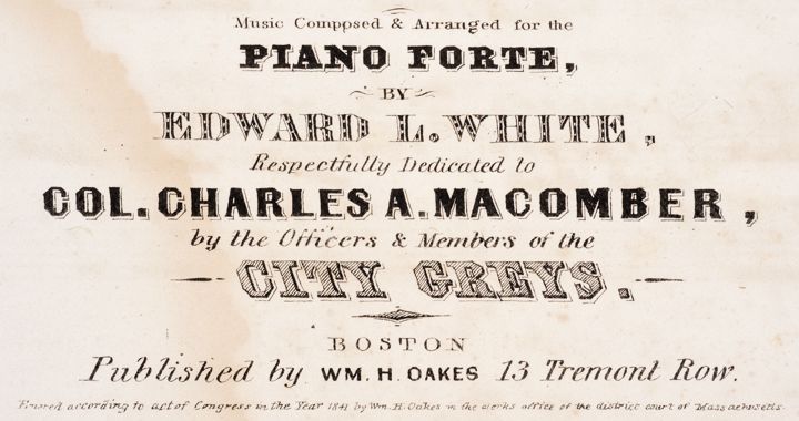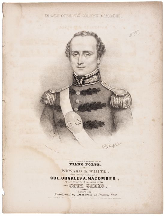 1841 HISTORICAL MILITARY SHEET MUSIC - MACOMBER'S GRAND MARCH, Boston