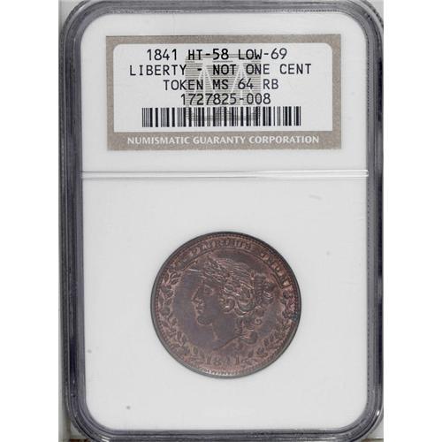 1841 Liberty - Not One Cent, Low-69, HT-58, MS64 Red an