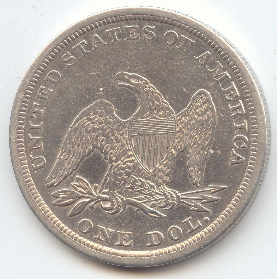 1841 Liberty Seated Dollar XF. The Liberty Seated Dollar, designed by Christian Gobrecht, was minted from 1840 to 1873. In 1841, only 173,000 Philadelphia mint Liberty Seated Dollars were struck, making it a tough coin to locate. Seated Liberty Silver Dollars were primarily minted in Philadelphia, although there are 12 different branch mint issues.