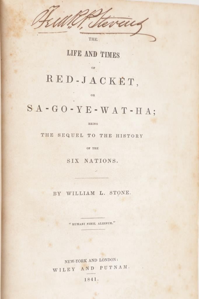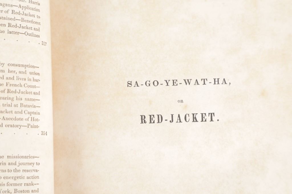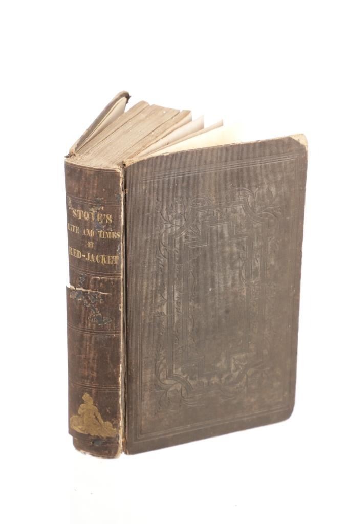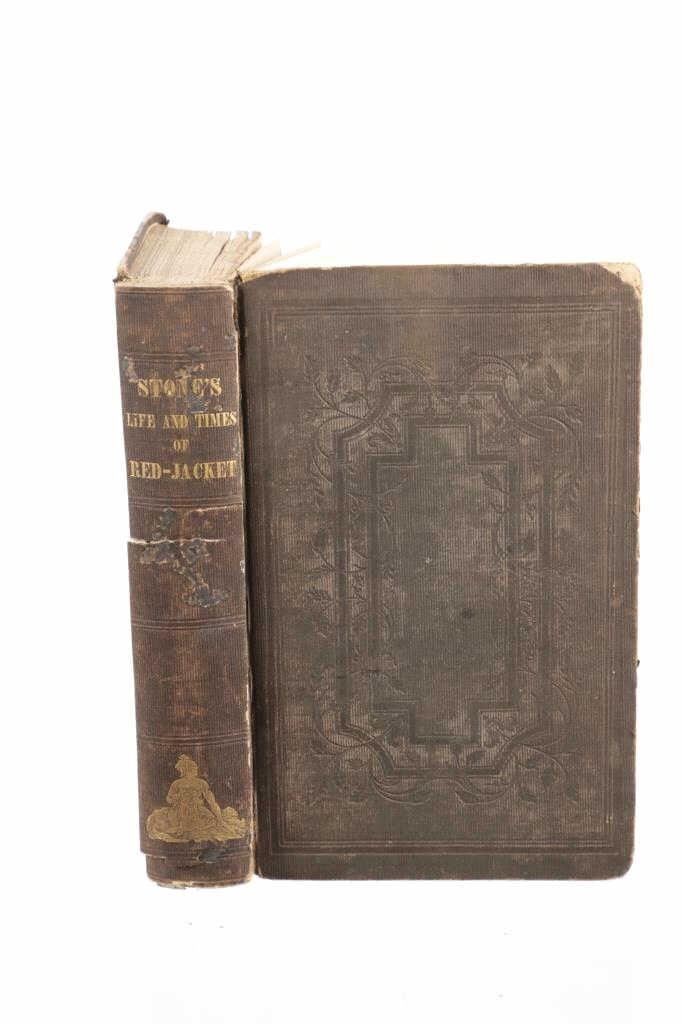 Featured in this lot is this 1841 first edition Life and Times of Red Jacket by William Stone. The Life and Times of Red Jacket by William Leete Stone is a comprehensive biography of the famous Seneca orator and leader Red Jacket (c. 1750–1830). Originally published in 1841, the book provides a detailed account of Red Jacket's life, his role in the history of the Iroquois Confederacy, and his interactions with both Native Americans and European settlers during a tumultuous period in American history. William Leete Stone (1792–1844) was an American journalist, historian, and author. He was the editor of several newspapers, including the New York Commercial Advertiser, and he wrote extensively on Native American history and the American Revolution. The condition of this book shows some wear to the spine and the front cover and shows browning to the browning of the pages consistent with the age of the book. The measurements of this book is 9 1/2" x 6 1/4" x 1 5/8". The collective weight of this book is 2lb.