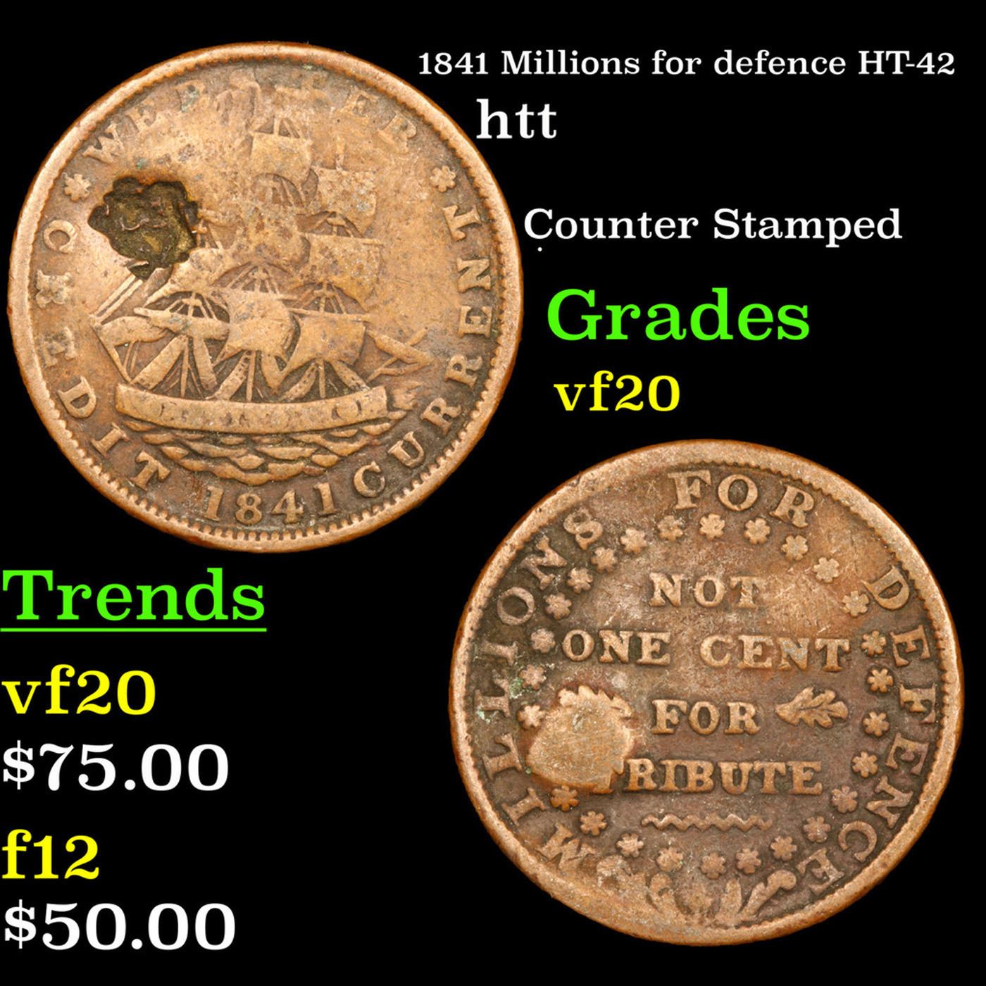 1841 Millions for defence HT-42 Hard Times Token 1c Grades vf, very fine.