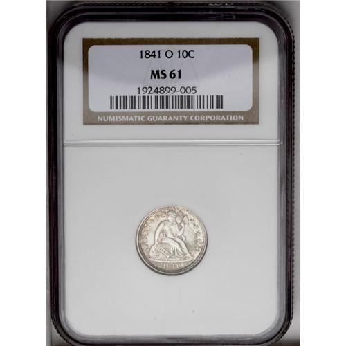 1841-O 10C MS61 NGC. Whispers of cobalt-blue, lavender 1841-O[10C] MS61 NGC.