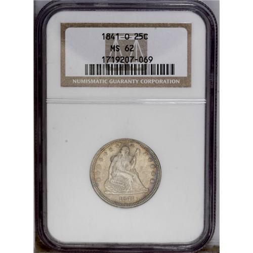 1841-O 25C MS62 NGC. Fully lustrous and lightly toned, 1841-O[25C] MS62 NGC.