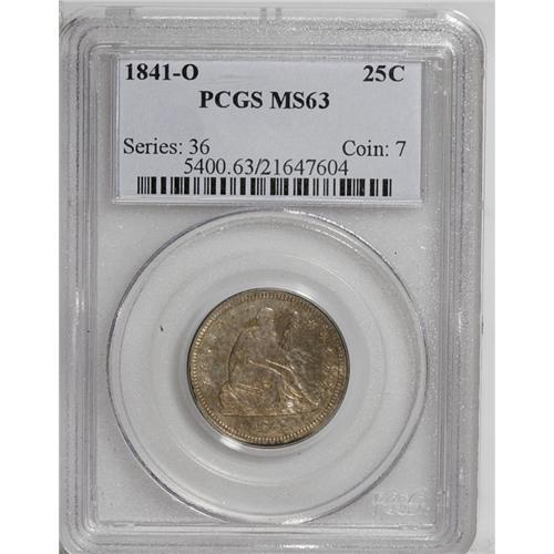 1841-O 25C MS63 PCGS. FS-001, Briggs 2-C. The shield i
