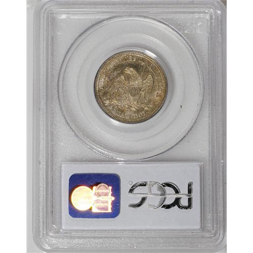 <B>1841-O<25C> MS63 PCGS.</B></I> FS-001, Briggs 2-C. The shield is strongly die doubled, as is Liberty's foot. The New Orleans Hoard of 1982 included multiples of this variety, many cleaned or corroded. This example is well struck over most of each golden-amber side. Population: 7 in 63, 6 finer (7/06).