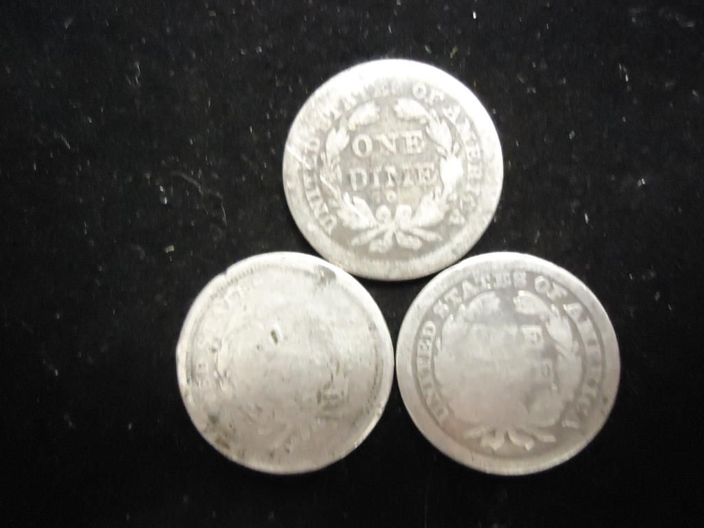 1841-O,42-O & 45 SEATED LIBERTY DIMES