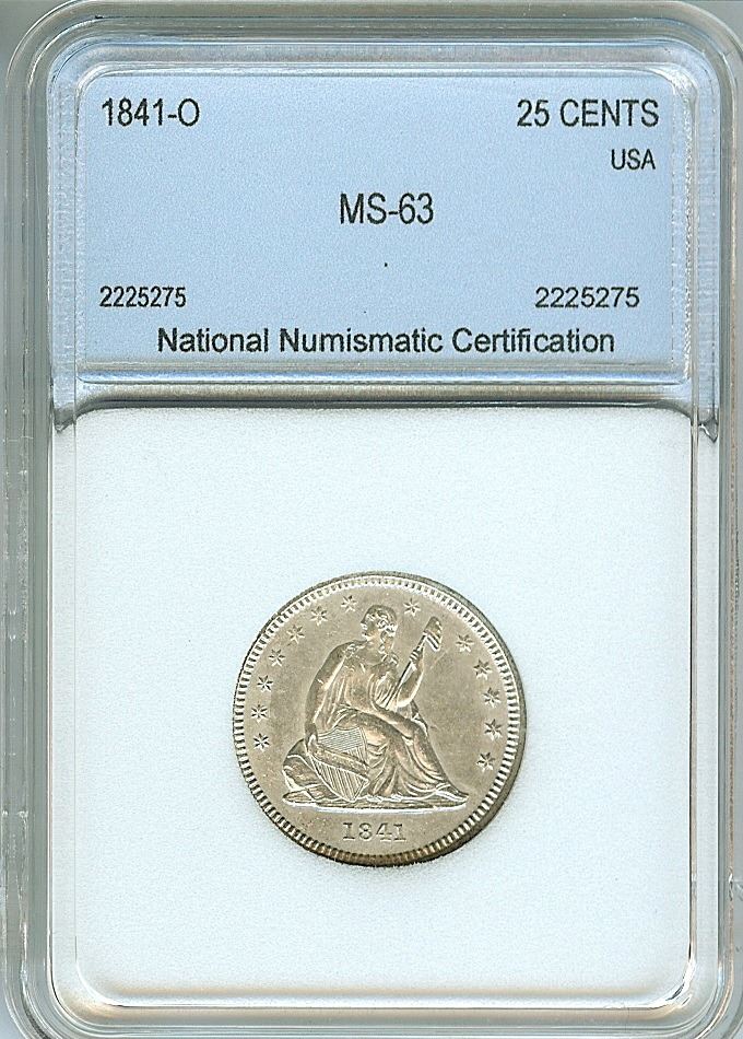 1841-O SEATED LIBERTY SILVER 25 CENTS NNC MS-63 SCARCE!