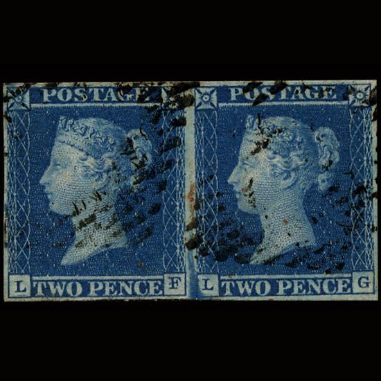 Excellent with light cancel; guide line thru values variety and ink bleed error between pair; no hidden faults; plate 3; Gibbons £800