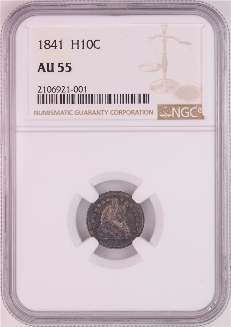 One 1841 Seated Liberty Half Dime Coin NGC AU55. NGC Certified.