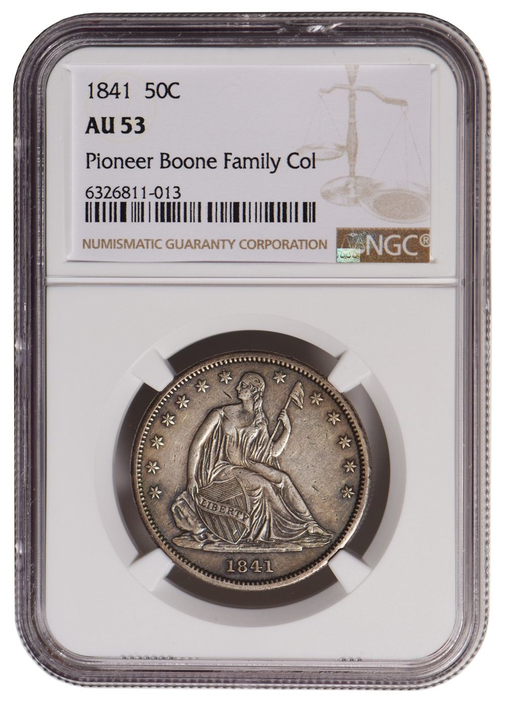 One 1841 Seated Liberty Half Dollar NGC AU53.