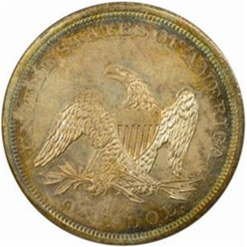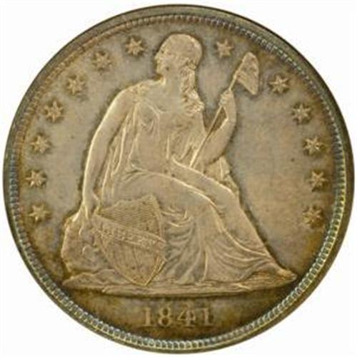 <style type="text/css"> body, td, th { font-family: Arial, Helvetica, sans-serif; font-size: 12px; color: #482424; margin: 0px; padding: 0px; } #header { background-image: url(http://www.bowersandmerena.com/ebay/images/template_v3_01.gif); clear: both; background-color: #590303; border-top-width: 2px; border-top-style: solid; border-top-color: #B38C4F;}#header #header_wrapper { height: 75px; clear: both; width: 800px; margin-right: auto; margin-left: auto; background-image: url(http://www.bowersandmerena.com/ebay/images/template_v3_03.gif); background-repeat: no-repeat; background-position: right; color: #F3EDCC;}#header #header_wrapper #header_logo { float: left; height: 75px; width: 444px; background-image: url(http://www.bowersandmerena.com/ebay/images/template_v3_02.gif); background-repeat: no-repeat; font-size: 10px; text-transform: capitalize; color: #B38C4F;}#header #header_wrapper #header_right { float: left; height: 75px; width: 356px; text-align: right;}#header #header_wrapper #header_right #headerLoginBtn { margin-bottom: 30px;}#header #header_wrapper #header_right input#txtSearch { color: #B49056; border: 1px solid #B49056; width: 175px; padding-top: 3px; padding-right: 3px; padding-bottom: 4px; padding-left: 3px;}#nav { height: 37px; background-image: url(http://www.bowersandmerena.com/ebay/images/template_v3_05.gif); clear: both;}#nav #nav_wrapper { height: 35px; width: 800px; margin-right: auto; margin-left: auto; border-left-width: 1px; border-left-style: solid; border-left-color: #B38C4F;}#nav #nav_wrapper a { padding-right: 15px; padding-left: 15px; border-right-width: 1px; border-right-style: solid; border-right-color: #B38C4F; height: 25px; padding-top: 10px; display: block; float: left; text-decoration: none; font-weight: bold; color: #5D0303;}#nav #nav_wrapper a:hover { color: #B38C4F;}#nav #nav_wrapper #search { float: right; padding-top: 7px;}#nav #nav_wrapper #search #txtSearch { font-family: Arial, Helvetica, sans-serif; font-size: 10px; text-transform: uppercase; color: #D2AE75; border: 1px solid #B38C4F; padding: 3px;}#content_bgd { background-image: url(http://www.bowersandmerena.com/ebay/images/template_v3_09.gif); background-repeat: repeat-y; background-position: center; padding-top: 15px; padding-bottom: 15px; background-color: #FBFBDB;}#content_wrapper { clear: both; height: auto; width: 800px; margin-right: auto; margin-left: auto;}.LotDetailWhite{ line-height:normal; font-size:13px; font-family: arial,helvetica,sans-serif; color: White; font-weight: bold;}.LotDetailInformation{ line-height:normal; font-size: 13px; font-family: arial,helvetica,sans-serif;}.LotDetailMessage{ line-height:normal; font-size: 13px; font-family: arial,helvetica,sans-serif; color: red;}}tr.HeaderAuctionTitle td { color: #000000; font-weight: bold; padding: 2px; background-image: url(http://www.bowersandmerena.com/ebay/images/template_v3_05.gif); background-repeat: repeat-x; border-bottom-width: 1px; border-bottom-style: solid; border-bottom-color: #B38C4F;}table.AuctionSummary a, table.AuctionSummary a:link, table.AuctionSummary a:visited { color: #0000FF; text-decoration: none;}}td.tableHeaderLeft { border-left-width: 1px; border-left-style: solid; border-left-color: #B38C4F;}td.tableHeaderRight { border-right-width: 1px; border-right-style: solid; border-right-color: #B38C4F;}td.tableCellMiddle { border-left-width: 1px; border-left-style: solid; border-left-color: #B38C4F; border-right-width: 1px; border-right-style: solid; border-right-color: #B38C4F; padding: 5px;}tr.footer td { border-top-width: 1px; border-top-style: solid; border-top-color: #B38C4F;}</style></head><body><div id="header"> <div id="header_wrapper"> <div id="header_logo"> </div> <div id="header_right"> </div> </div></div><div id="nav"> <div id="nav_wrapper"> <a href="http://www.bowersandmerena.com">Our eBayLive Auctions</a> <a href="#PaymentInfo">Payment Information</a> <a href="#ShippingInfo">Shipping Information</a> <a href="#About">About Bowers and Merena</a> </div></div><div id="content_bgd"> <div id="content_wrapper"> <table width="100%" border="0" cellpadding="5" cellspacing="0" class="AuctionSummary"> <tbody> <tr class="HeaderAuctionTitle" style="height: 25px;"> <td align="left" class="tableHeaderLeft" > </td> <td align="center" class="tableHeaderRight"> <span style="font-size: large;">Lot #717. 1841 Seated Liberty Silver Dollar. MS-64 (NGC). CAC.</span> </td> </tr> <tr> <td colspan="3" class="tableCellMiddle"> After getting off to a slow start in 1840, Seated Dollar production reached a relatively respectable level in 1841. Coins of this denomination were still produced solely at the request of bullion depositors, however, and the lack of significant domestic sources of silver precluded a mintage of more than 173,000 pieces for the 1841. (The rich Comstock Lode was not discovered until 1859.) As with the 1840, the 1841 largely passed into circulation, thus explaining the prevalence of worn coins among survivors. Mint State examples are rare in all grades, and near-Gems such as this easily qualify as Condition Census.Blatantly original, both sides exhibit vivid cobalt-blue peripheral highlights around otherwise pearl-gray surfaces. Direct angles also reveal brighter pinkish-apricot undertones, particularly on the obverse. Although not 100% full, the strike is suitably bold for a No Motto issue in the Seated Dollar series. There are no significant abrasions, and the eye appeal is among the strongest that we have seen in an 1841 Silver Dollar in quite some time.