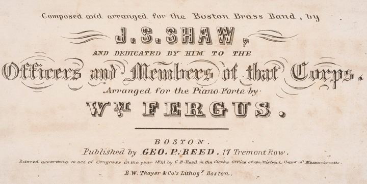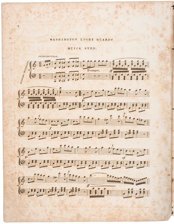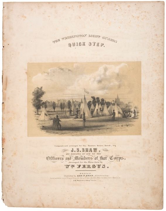 1841-Dated. First Edition. Historic Printed Sheet Music, THE WASHINGTON LIGHT GUARDS QUICK STEP. Composed and arranged for the Boston Band by J.S. Shaw. Published by Geo. P. Reed, 17 Tremont Row, Boston, Very Fine.