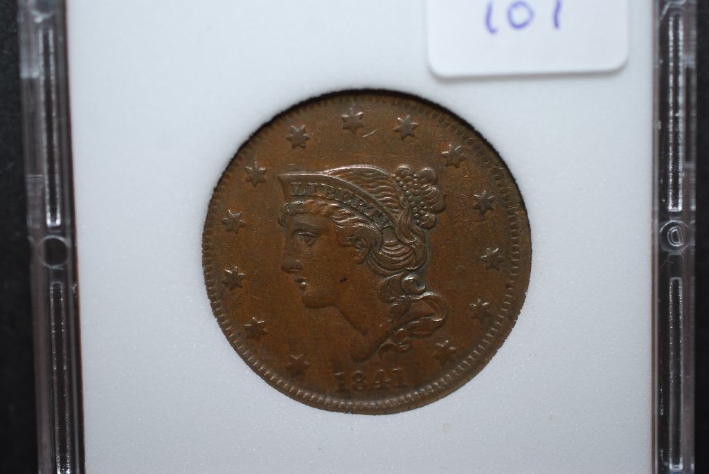 1841 US Large One Cent; MCPCG Graded EF40; EST. $125-250