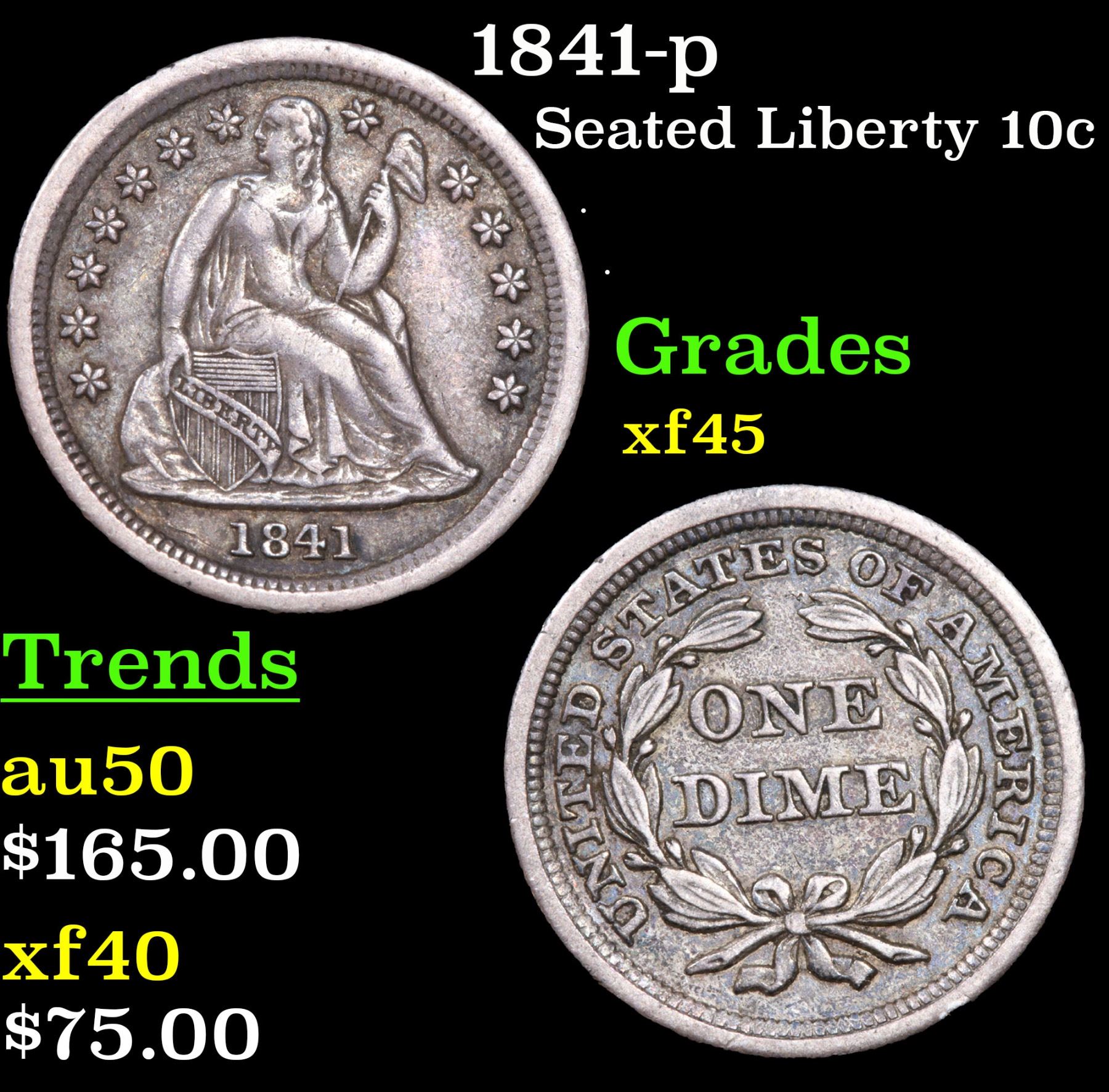 1841-p . . Seated Liberty Dime 10c Grades xf+.