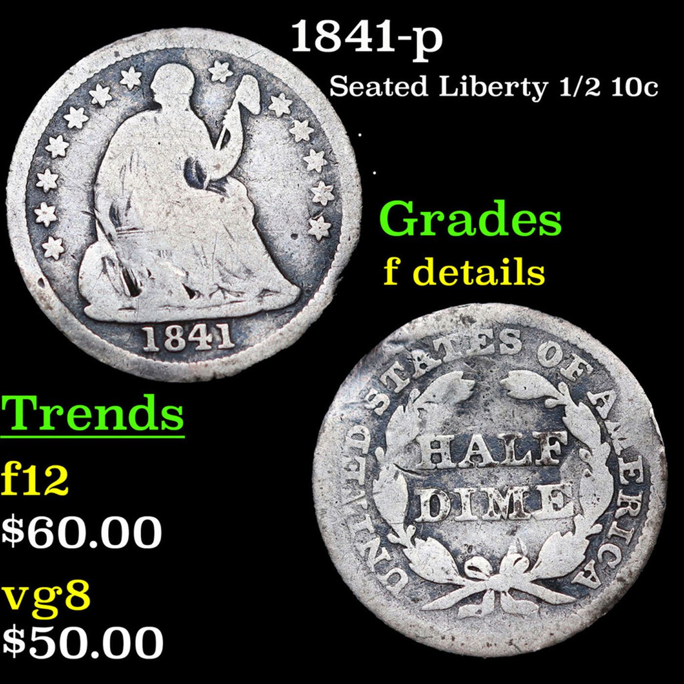 1841-p Seated Liberty Half Dime 1/2 10c Grades f details.
