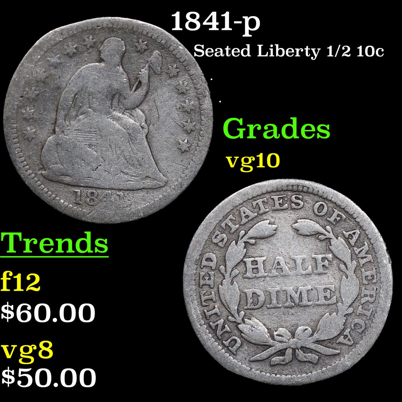 1841-p Seated Liberty Half Dime 1/2 10c Grades vg+.