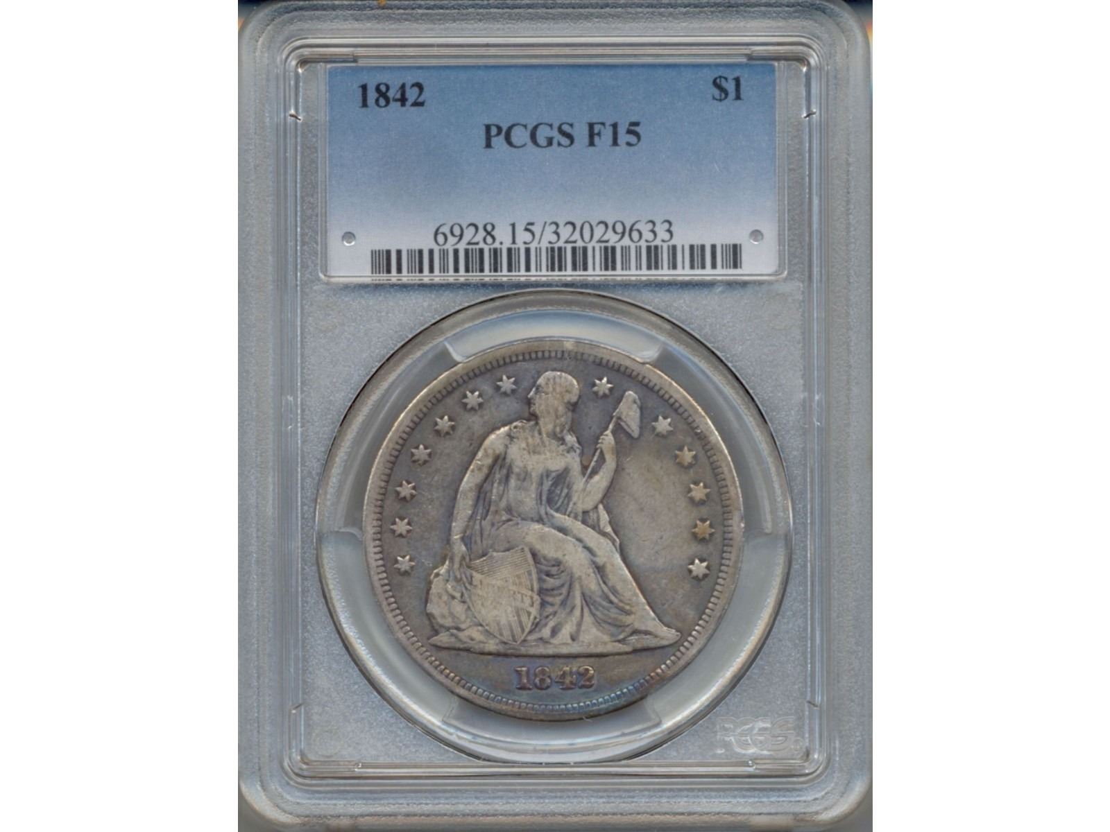 One 1842 $1 Seated Dollar Coin PCGS F15.